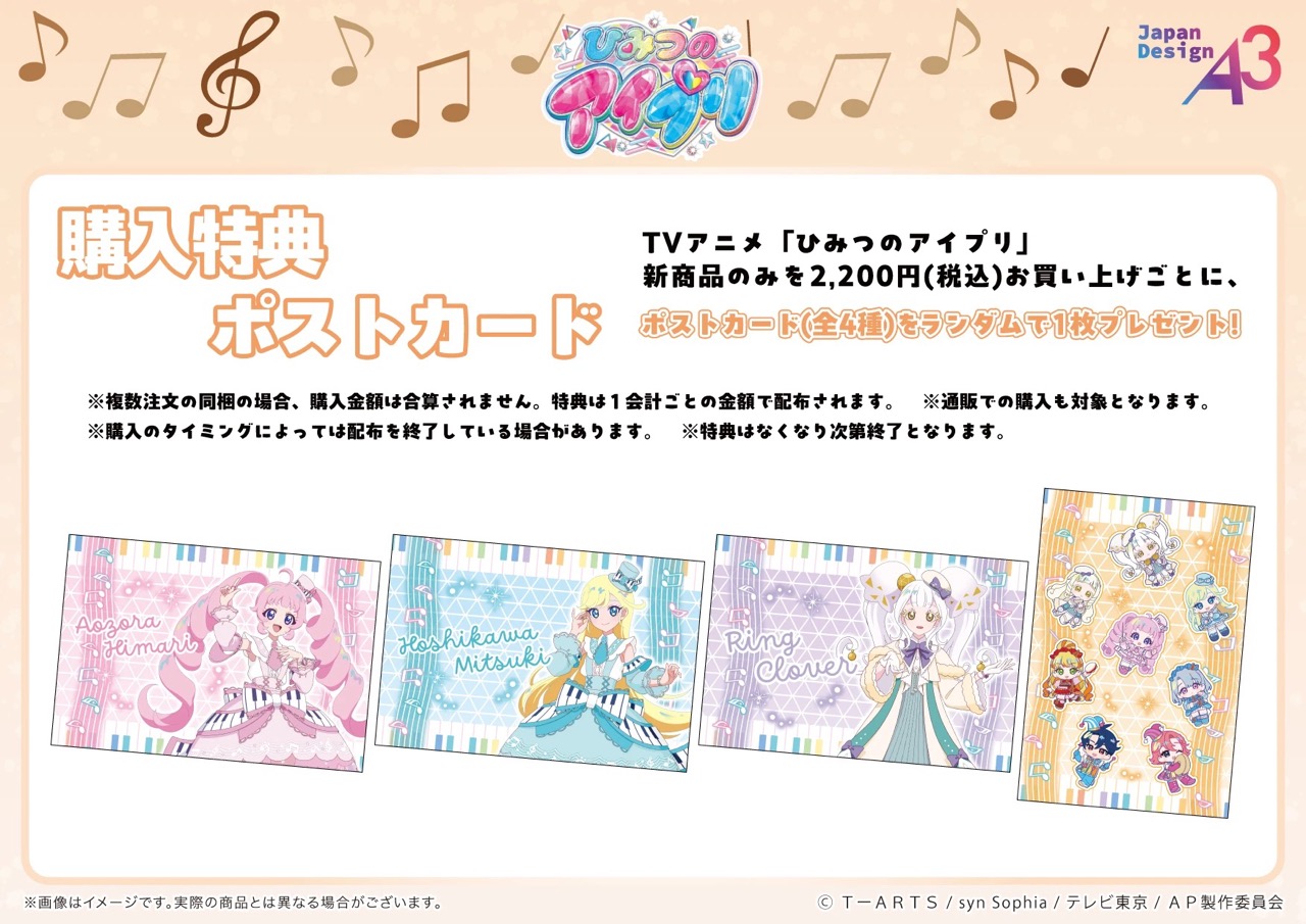 アニメ「ひみつのアイプリ」ポップアップストアでは、イベント限定の《音楽の秋》な新規描き下ろし&描き起こしミニキャラのイラストを使用した新作グッズが多数販売される。