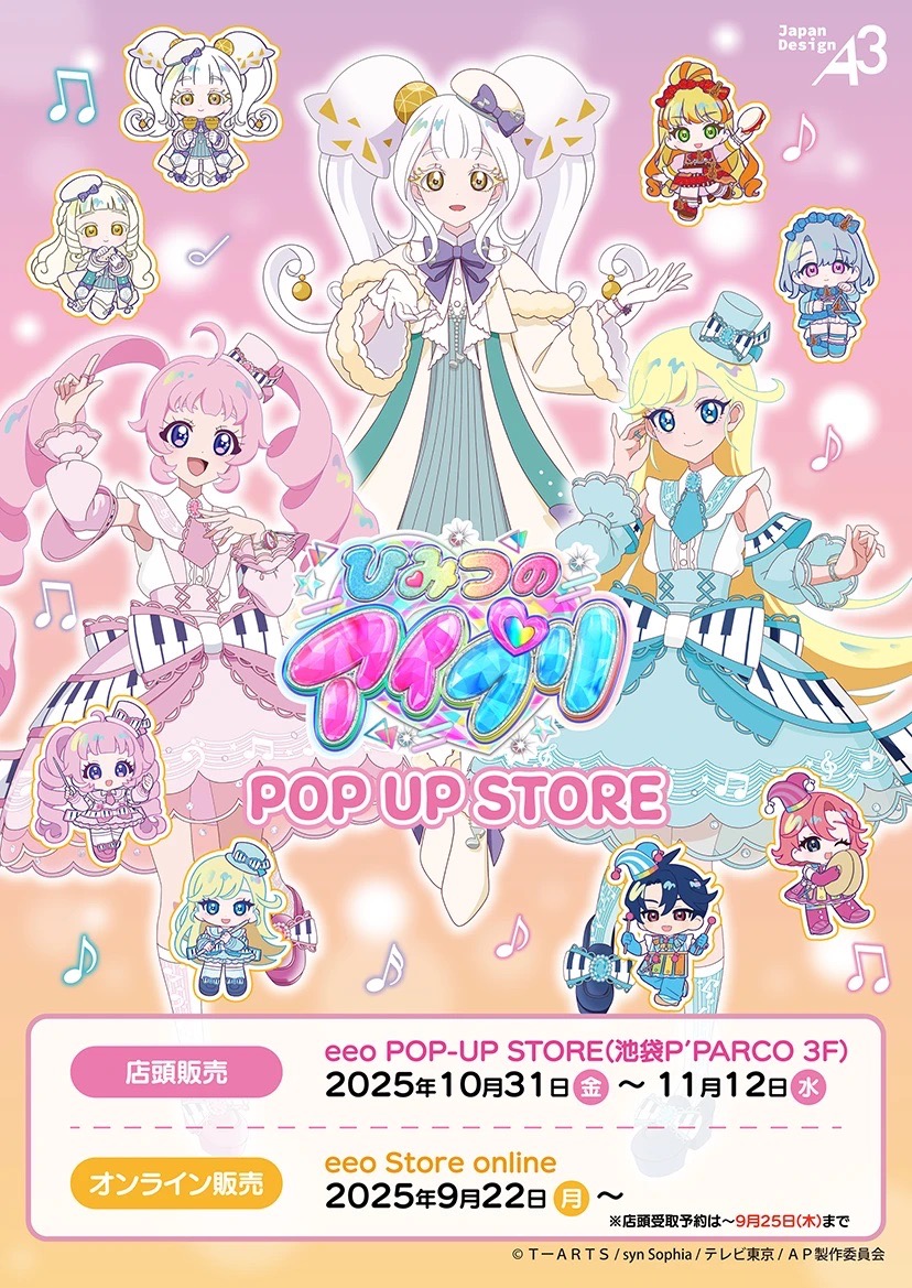 タカラトミーアーツとシンソフィアが共同開発した人気アーケードゲームを原作とするTVアニメ「ひみつのアイプリ」のポップアップストアが、eeo POP-UP STOREにて2025年10月31日〜11月12日まで開催される。