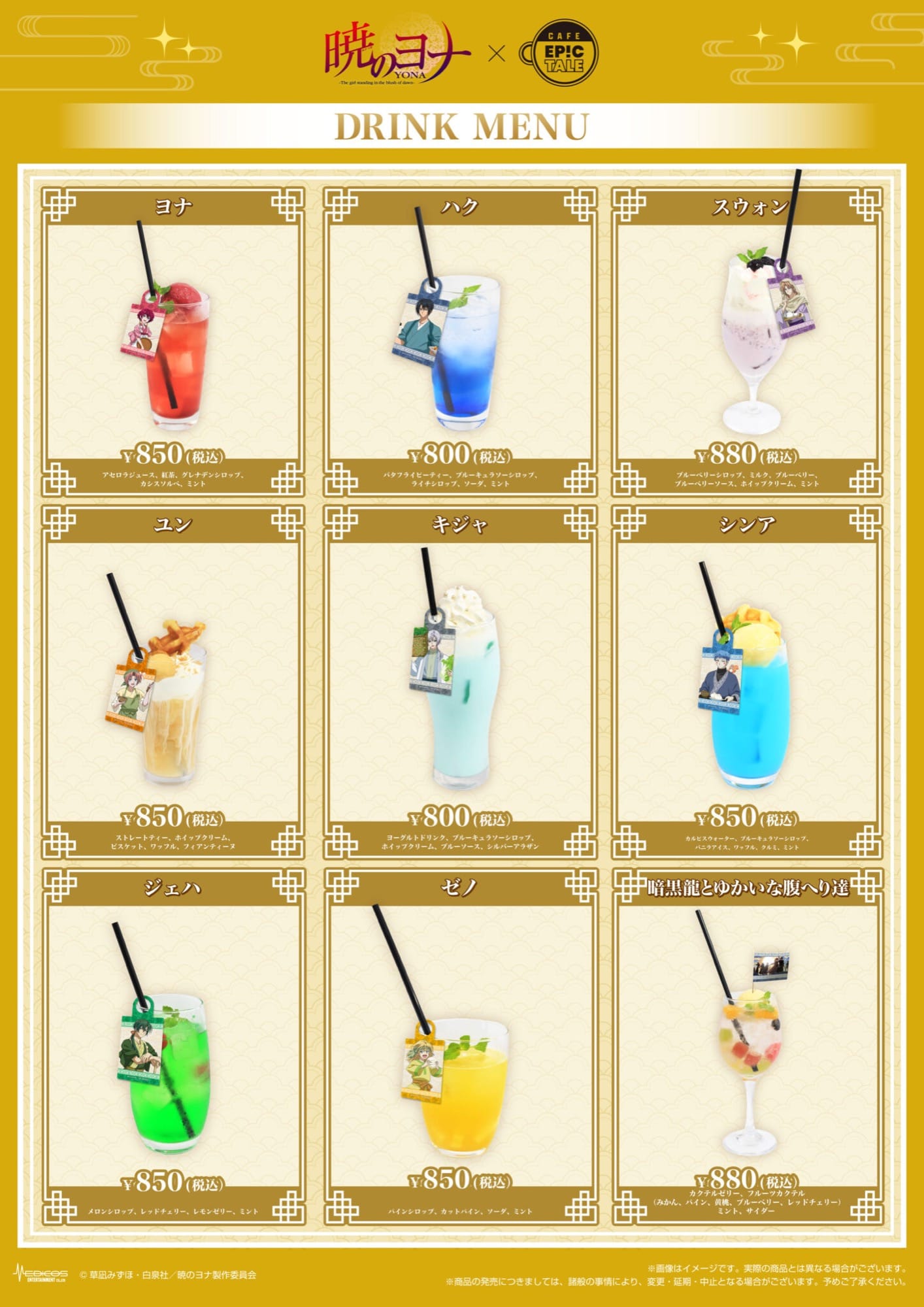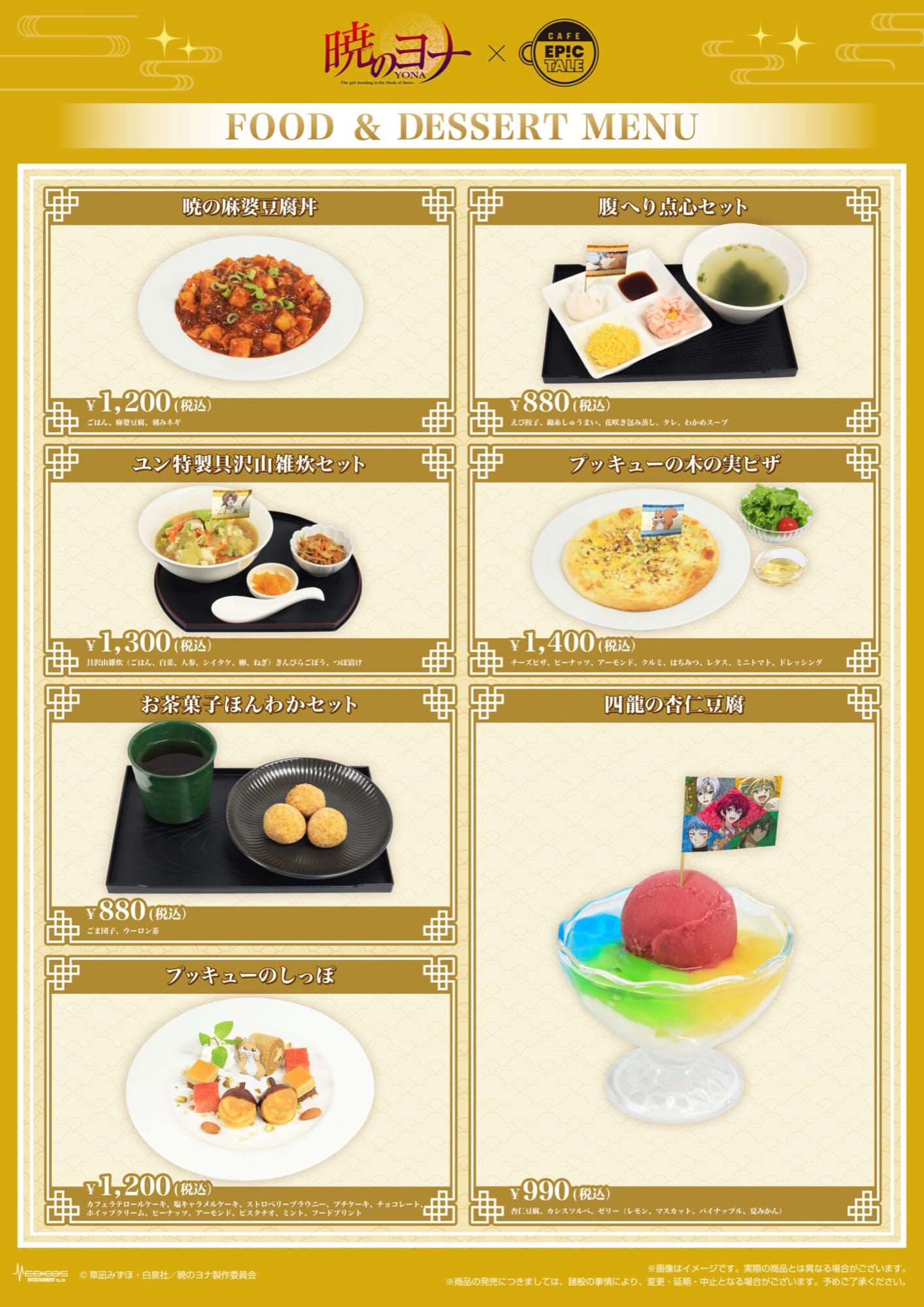 暁のヨナ × CAFE EPIC TALE大阪のメニュー