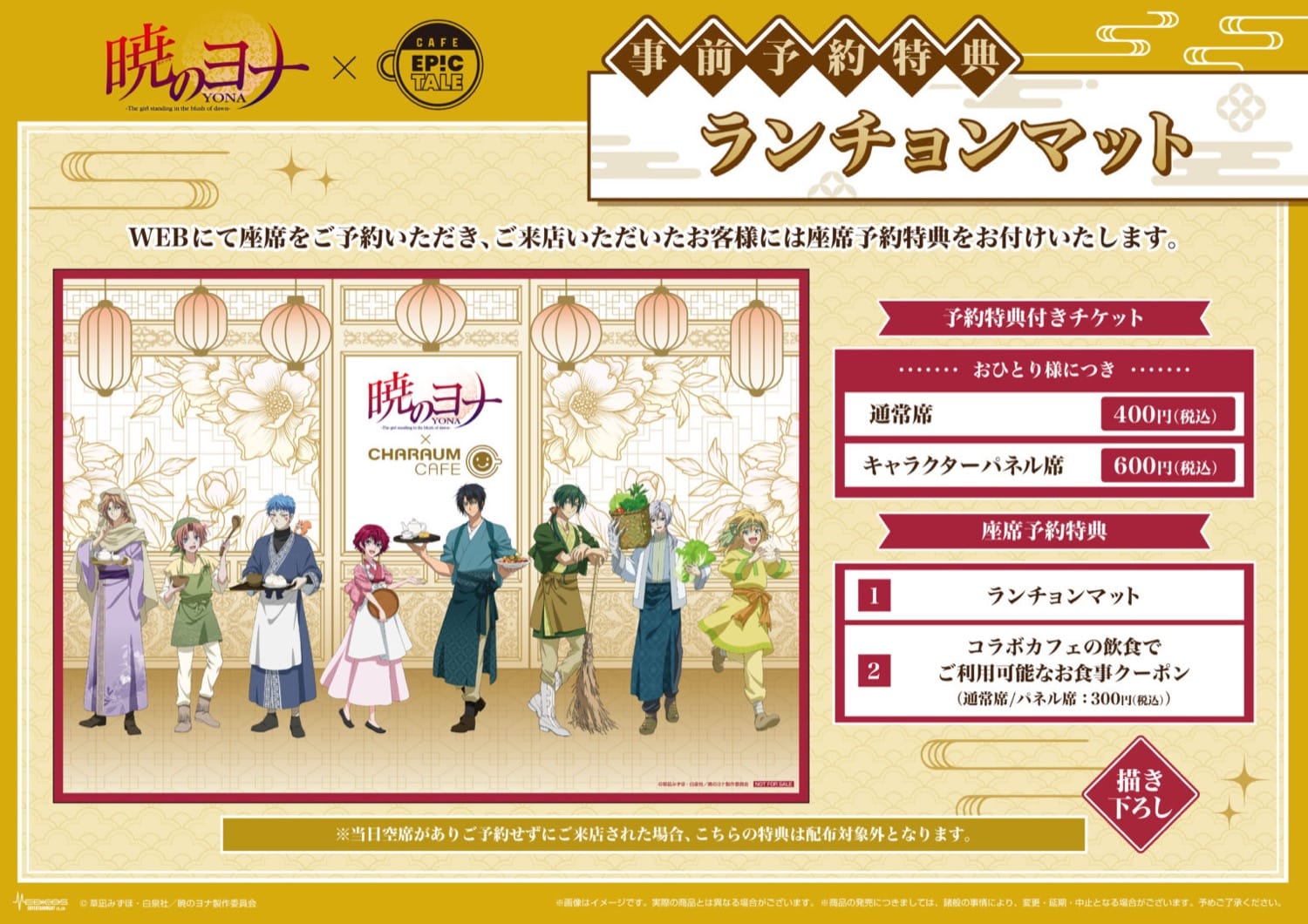 さらに、「暁のヨナ」カフェを事前予約のうえ利用した方には「ランチョンマット」1枚をプレゼント!