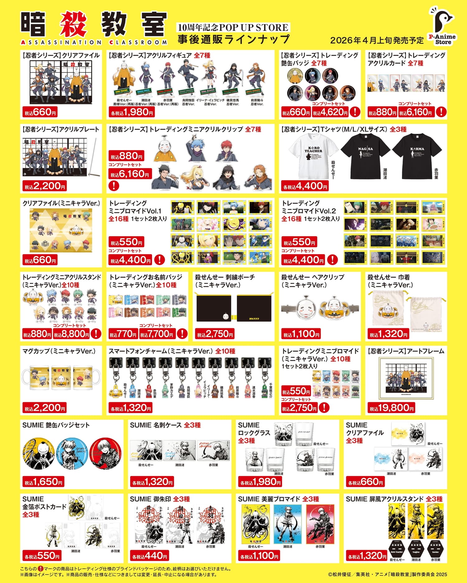 ■4月上旬以降順次発送予定#暗殺教室 #暗殺教室10th… pic.twitter.com/jTECwMwaxe— アニメ『暗殺教室』10周年記念POP UP STORE in ロフト【公式】 (@ansatsu_POPUP) January 30, 2026
