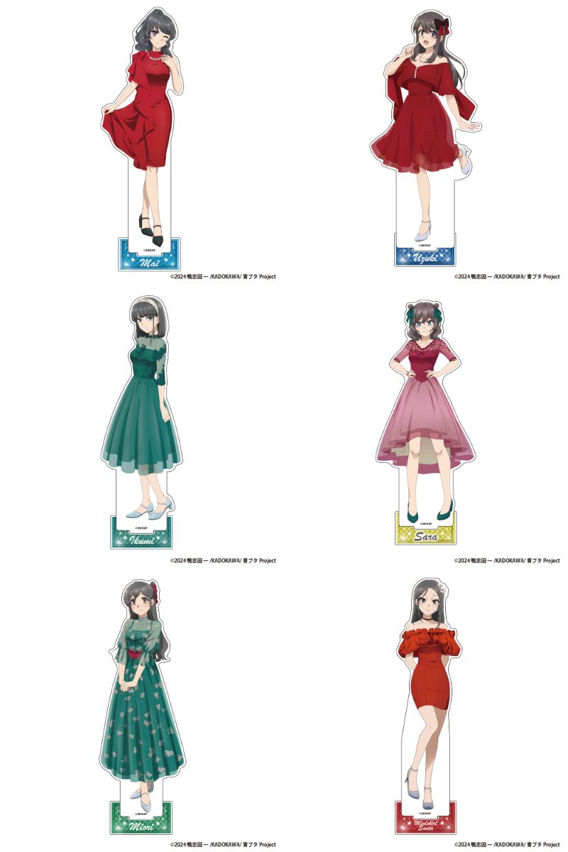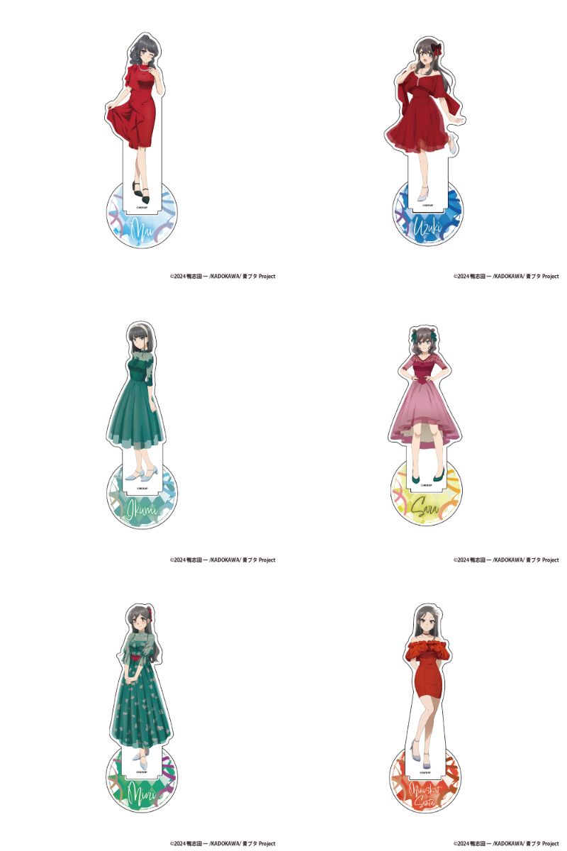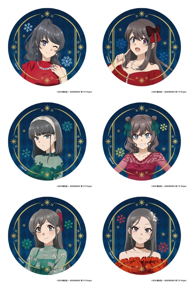 桜島麻衣、広川卯月、赤城郁実、姫路紗良、美東美織、ミニスカサンタたち6人の「BIG缶バッジ」や「アクリルスタンドフィギュア」など全6種がラインナップ。