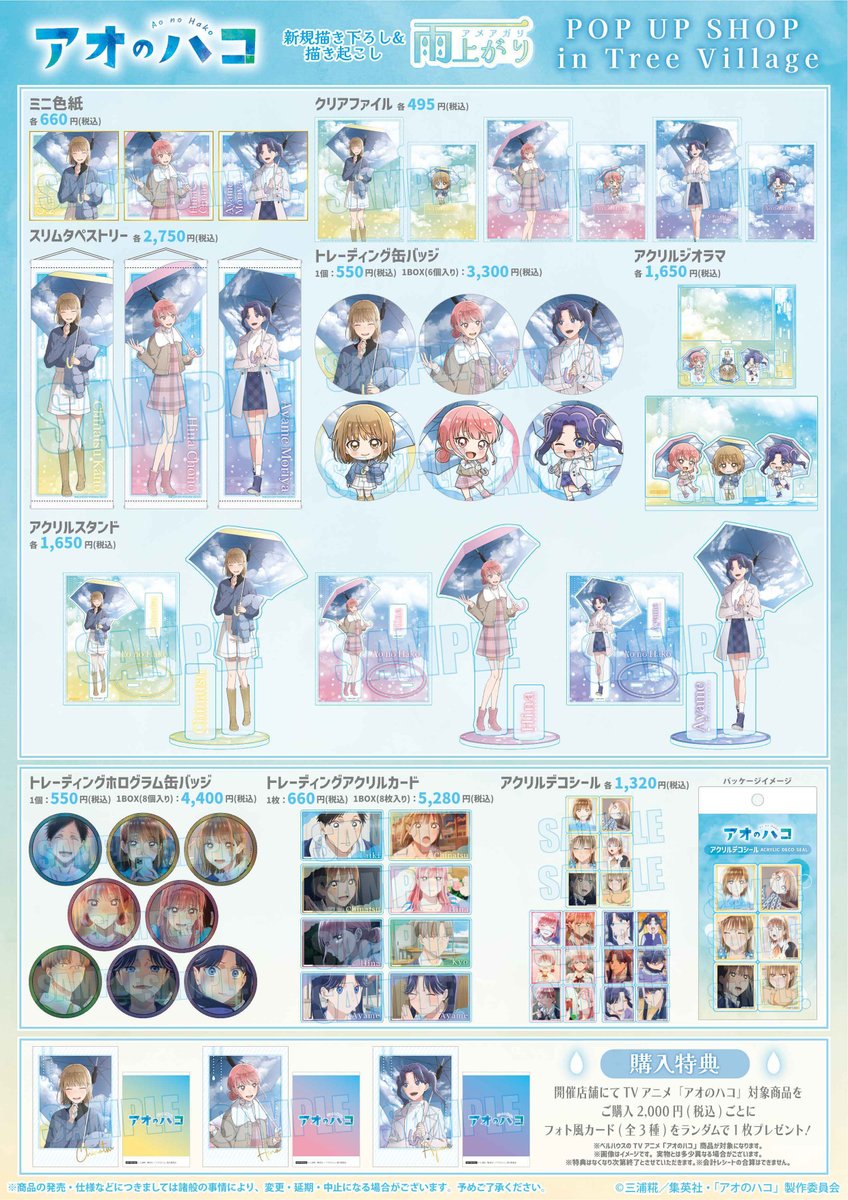 2026年1月7日より「ツリービレッジ4店舗(横浜/東京/大阪/博多)」にて、アニメ「アオのハコ」の描き下ろしグッズを販売するポップアップストアを開催!