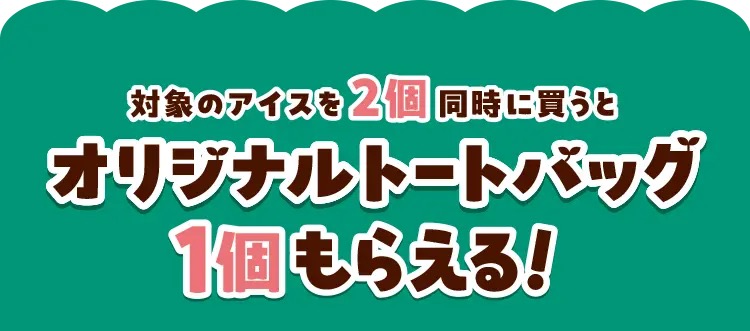 対象のアイスを1会計で2個 (組み合わせ自由) 同時に購入すると「オリジナルトートバッグ 全2種」の中からお好きな1つをプレゼント!