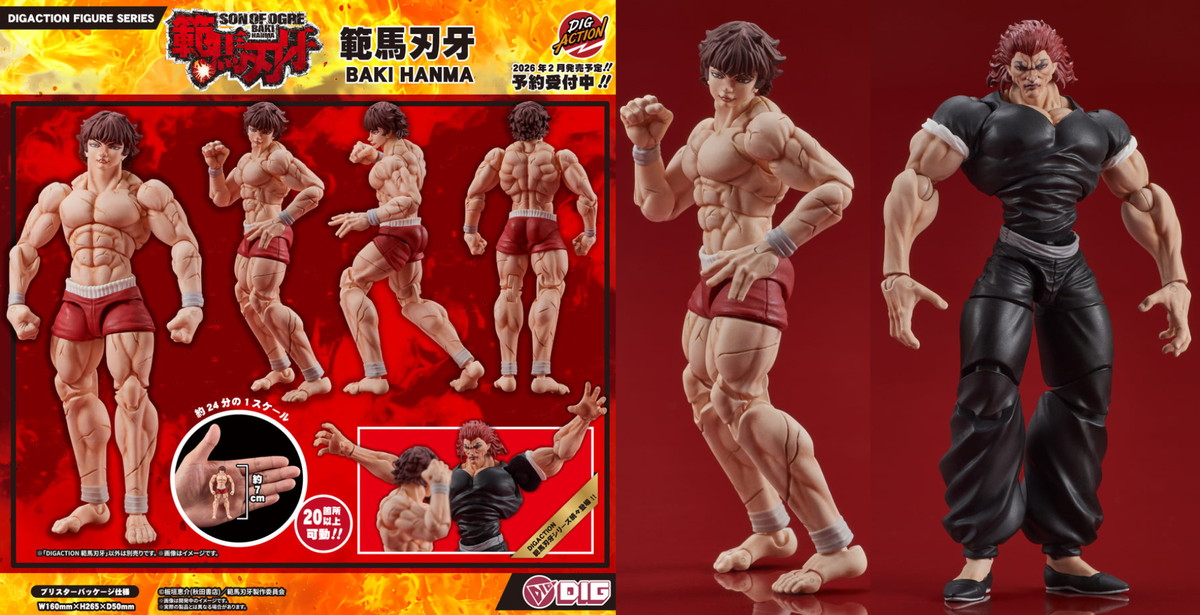 “史上最強の親子喧嘩”を描き切ったアニメ「範馬刃牙 (はんまばき)」より、約1/24スケールのコレクタブルアクションフィギュア『DIGACTION』が予約受付スタートッッ!