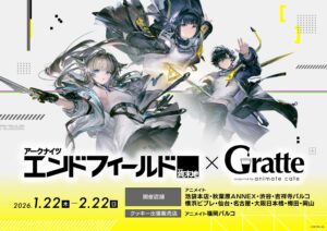 2026年1月22日より配信を開始する3Dリアルタイム戦略RPG『アークナイツ:エンドフィールド』× グラッテによるコラボが、アニメイト10店舗にて、2026年1月22日〜2月22日までが開催される。キャラクターをデザインしたラテ・クッキー・アイス 全12種に加え、有償特典アクリルコースター 全12種が登場!