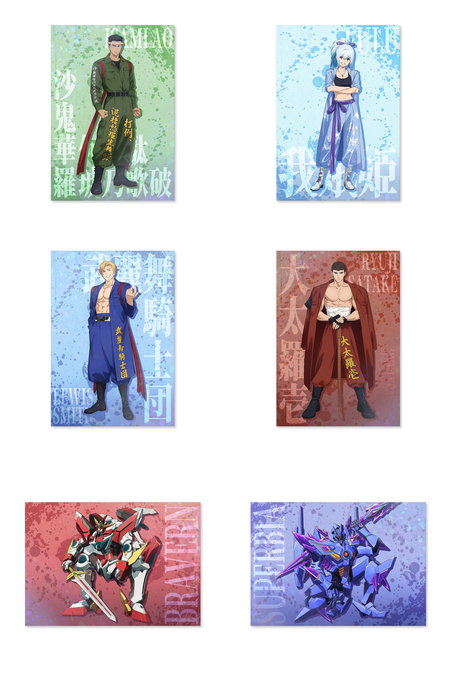 イサミ、ルル、スミス、サタケ隊長の4人がそれぞれのイメージカラーをまとった特攻服スタイルで勢揃いし、ブレイバーンとスペルビアは腰を落とした構えで睨みをきかせる。キャラクターたちの個性と熱量を感じさせるビジュアルだ。