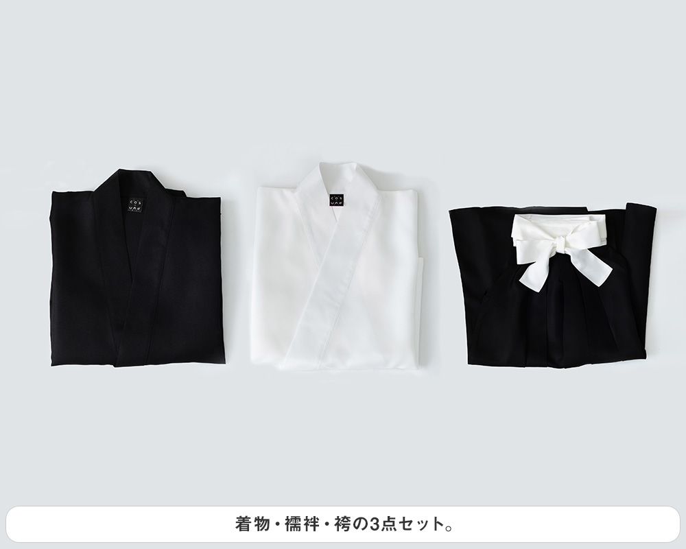 ジャンプフェスタ2026のコスパ ブースにて解禁された「死覇装」のコスプレ衣装がついに予約受付開始! セット内容は、着物・襦袢・袴の3点セット。 ユニセックスでご着用可能のため、自分に合ったサイズを選べるのがうれしいポイント。
