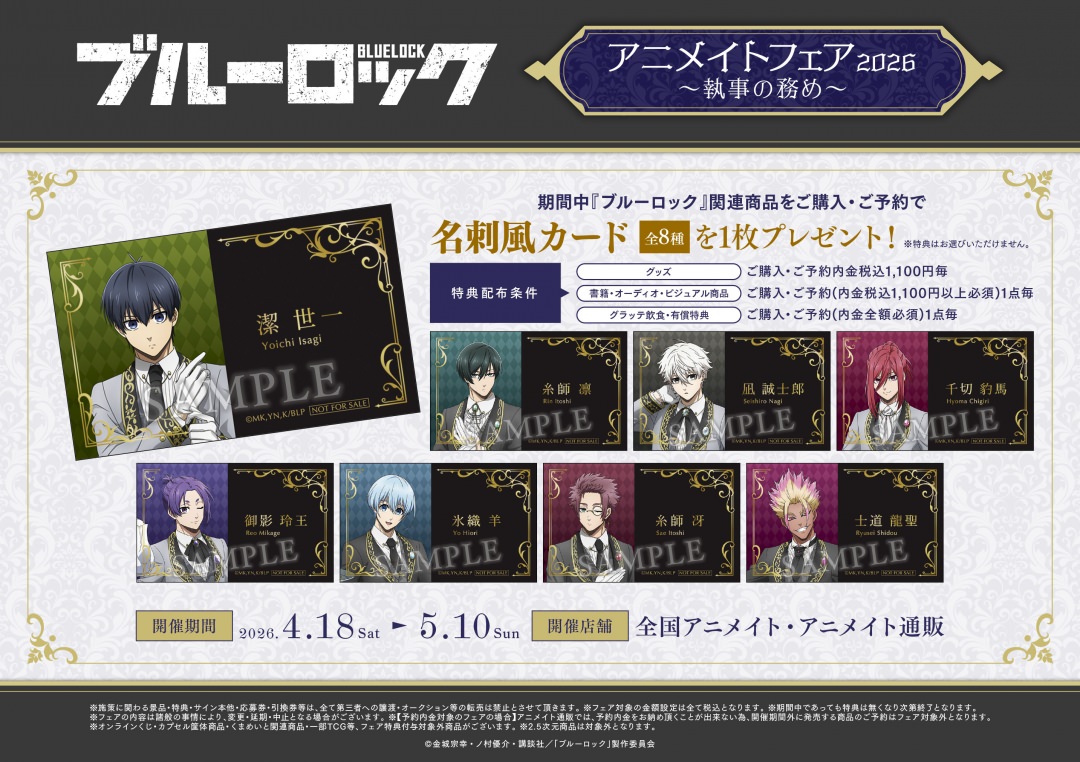 <26/4/18>より【TVアニメ『ブルーロック』アニメイトフェア2026 ~執事の務め~】が開催!⚽️