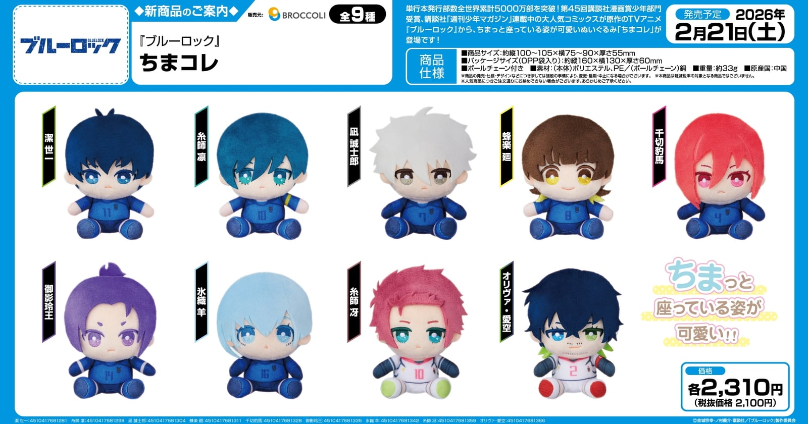 『#ブルーロック』より、ちまっと座っている姿が可愛いぬいぐるみ「ちまコレ」が登場!⚽️✨