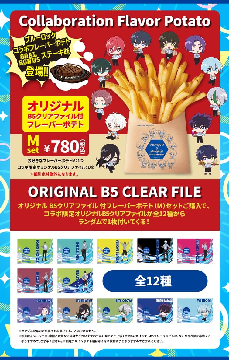 「ブルーロック × ウェンディーズ・ファーストキッチン」コラボでは、店員姿のエゴイストたちを描き下ろしたコラボ限定イラストが登場。さらに、ウェンディーズ全店で特典付きコラボフレーバーのポテトも販売!