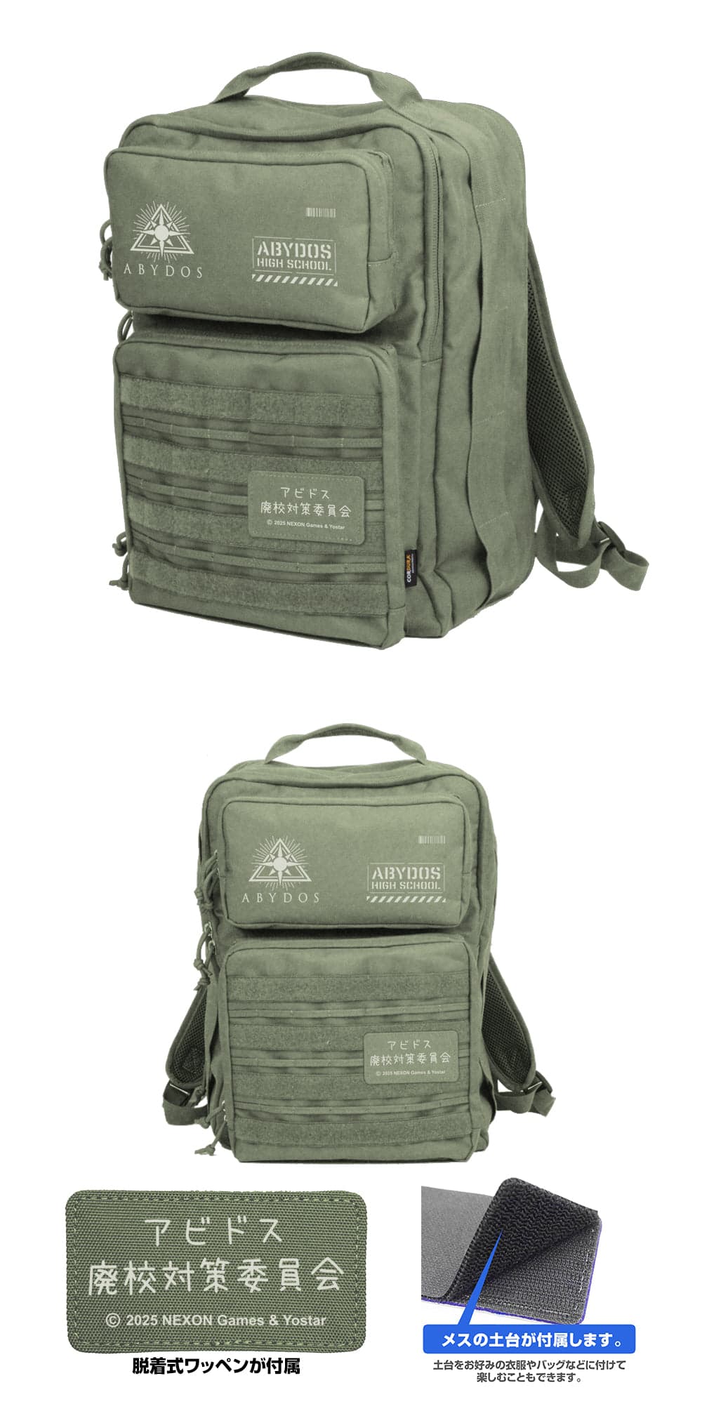 作中でおなじみのアドビス廃校対策委員会をモチーフに、ブラックとレンジャーグリーンの2色展開。機能性と実用性が感じられるデザインとなっている。
