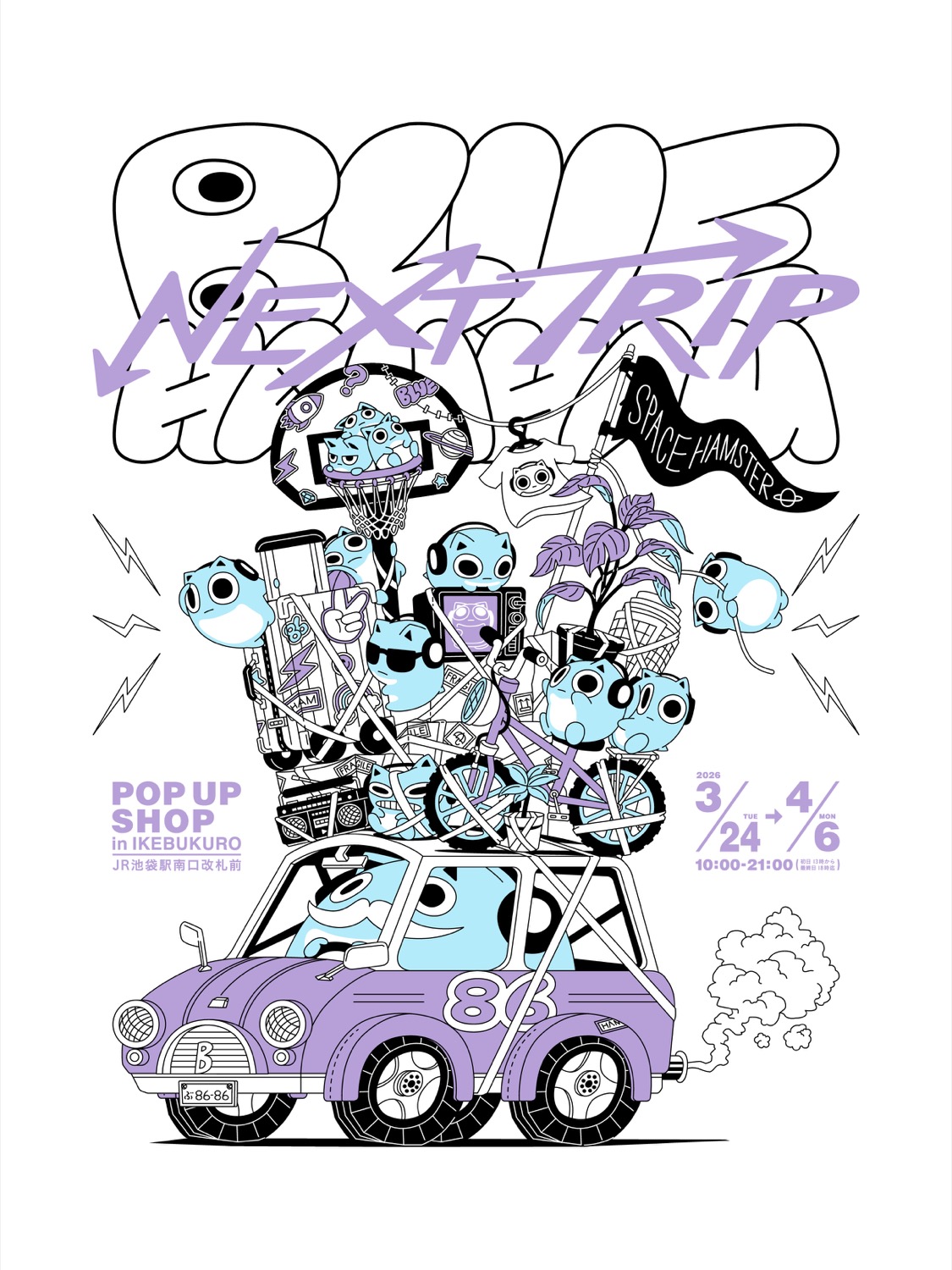有村泰志氏が手掛ける惑星”プロキシマb”からやってきた宇宙ハムスターの4兄弟「BLUE HAMHAM (ブルーハムハム)」のポップアップストアが、JR池袋駅南口改札前にて2026年3月24日〜4月6日まで開催される。