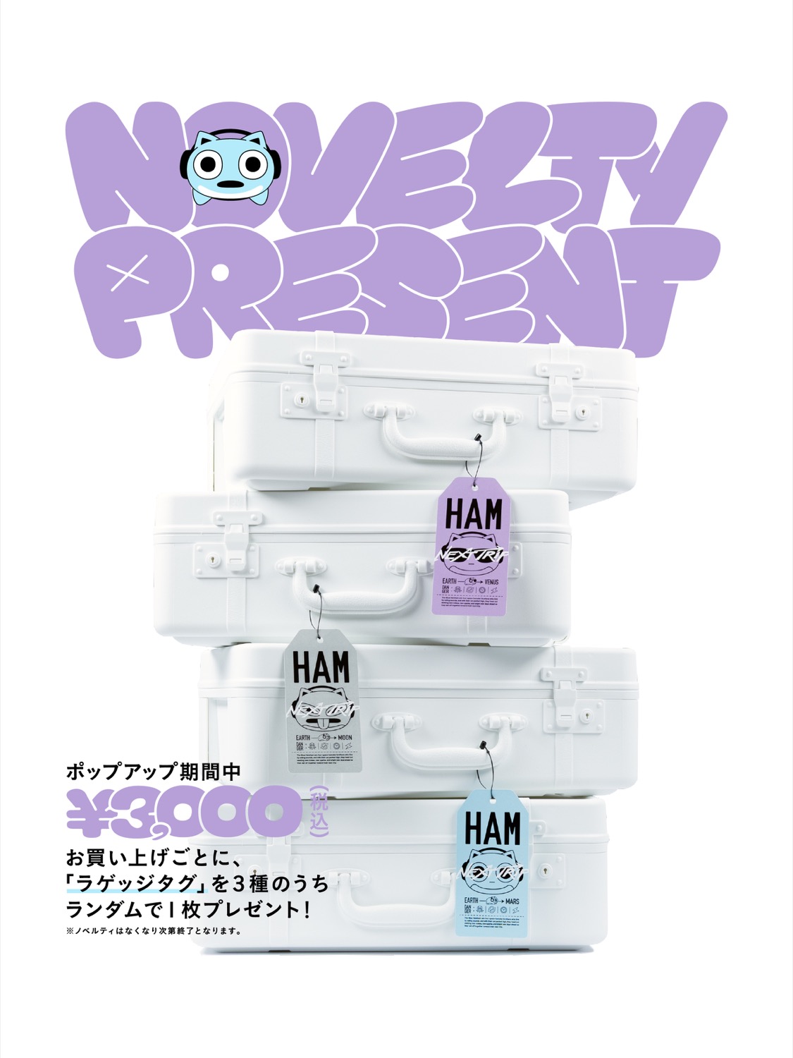 「BLUE HAMHAM (ブルーハムハム)」ポップアップストアにて、グッズをお買い上げ3,000円(税込)毎に特典として「ラゲッジタグ 全3種」がランダムに1枚プレゼントされる。