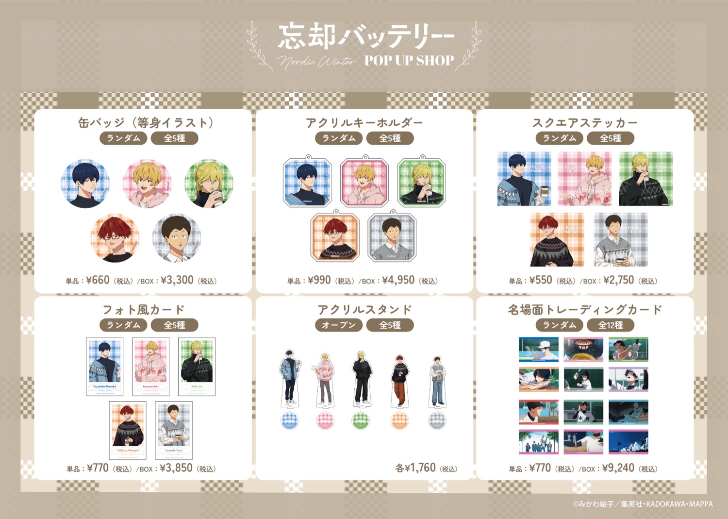 アニメ「忘却バッテリー」ポップアップストアでは、『冬コーデ』テーマの描き下ろしイラストを使用した新作グッズが多数ラインナップ!