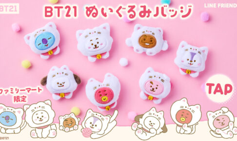 2026年4月17日より全国のファミリーマートにて、「BT21」のコラボグッズ「BT21 ぬいぐるみバッジ」が登場!