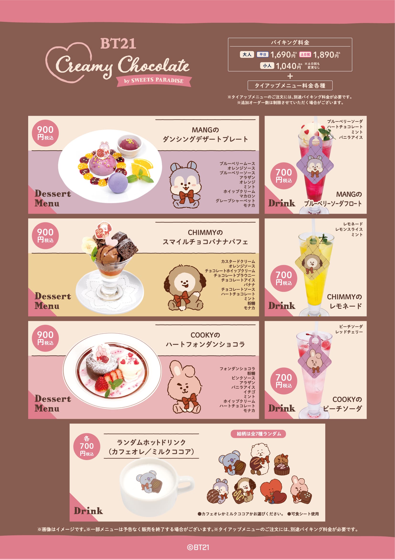 BT21 タイアップカフェ 第2弾 × スイパラ4店舗のメニュー