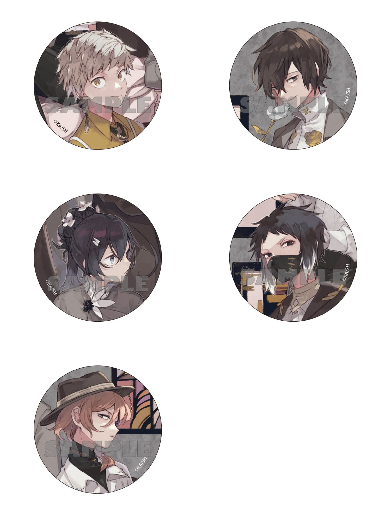 【再販】「文豪ストレイドッグス」春河35イラスト 缶バッジ [中島敦 / 太宰治 / 泉鏡花 / 芥川龍之介 / 中原中也] 各440円(税込)