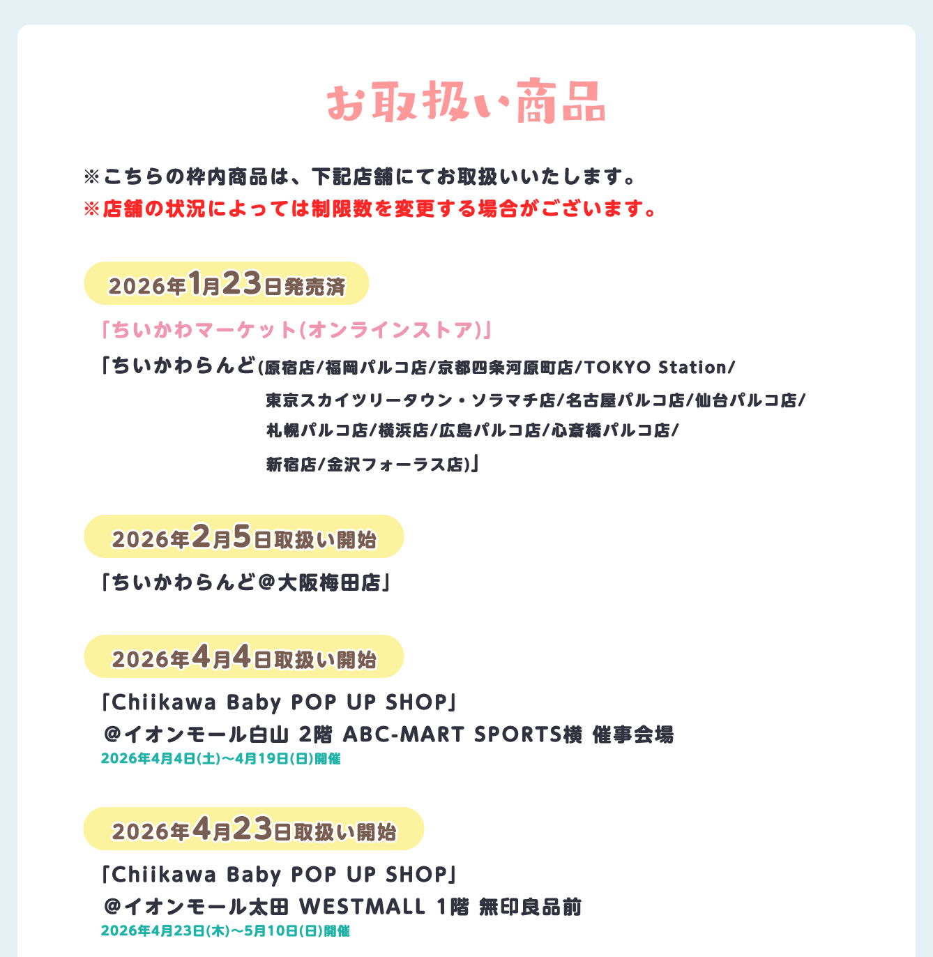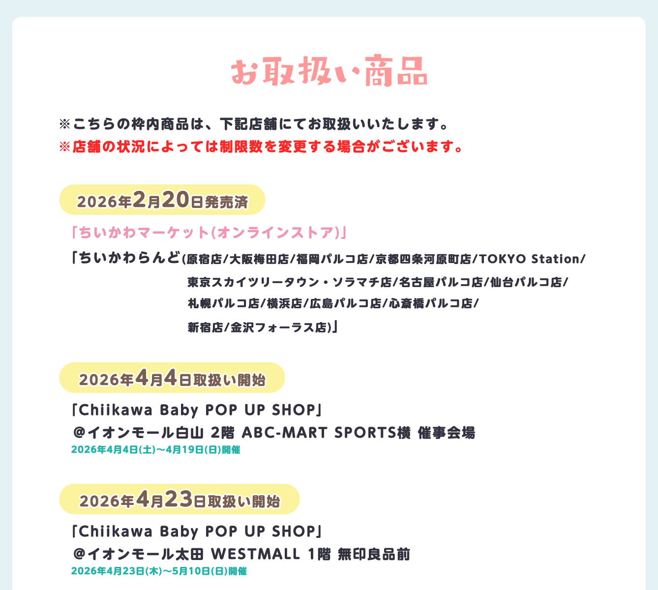 『Chiikawa Baby POP UP SHOP』