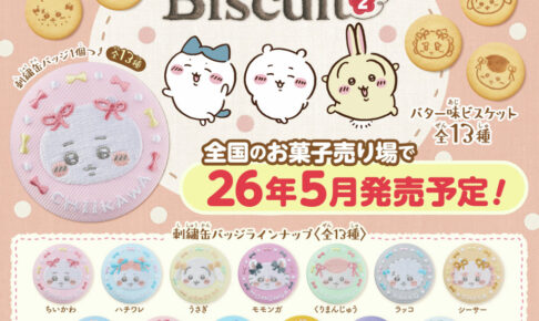 2026年5月より、全国量販店の菓子売場等に『ちいかわ 刺繍缶バッジビスケット2』登場!
