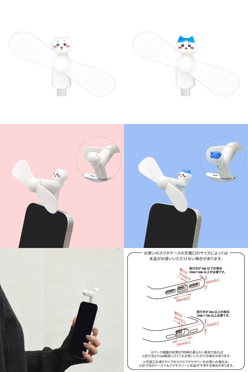 『ちいかわ』コネクタ付き ミニクールファン (USB Type-C) & (Lightning) ちいかわ / ハチワレ 全4種 各1,980円 (税込)