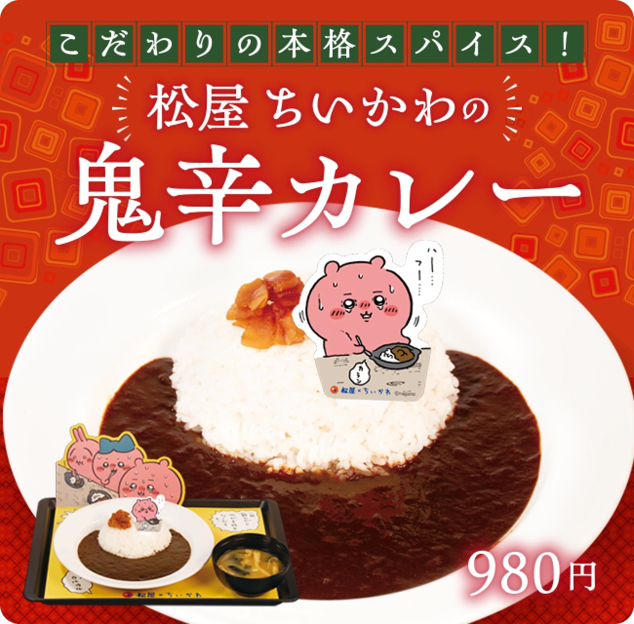 「ちいかわ × 松屋・松のや全国」コラボ第2弾では、作中に登場する「鬼辛カレー」を再現したメニューが、オリジナルフィギュア付きで登場。