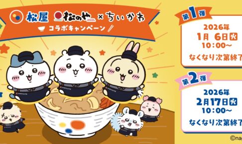 2026年1月6日より全国の松屋・松のやにて、開催される「ちいかわ」コラボキャンペーンでは、オリジナルグッズ付きコラボメニューが登場!