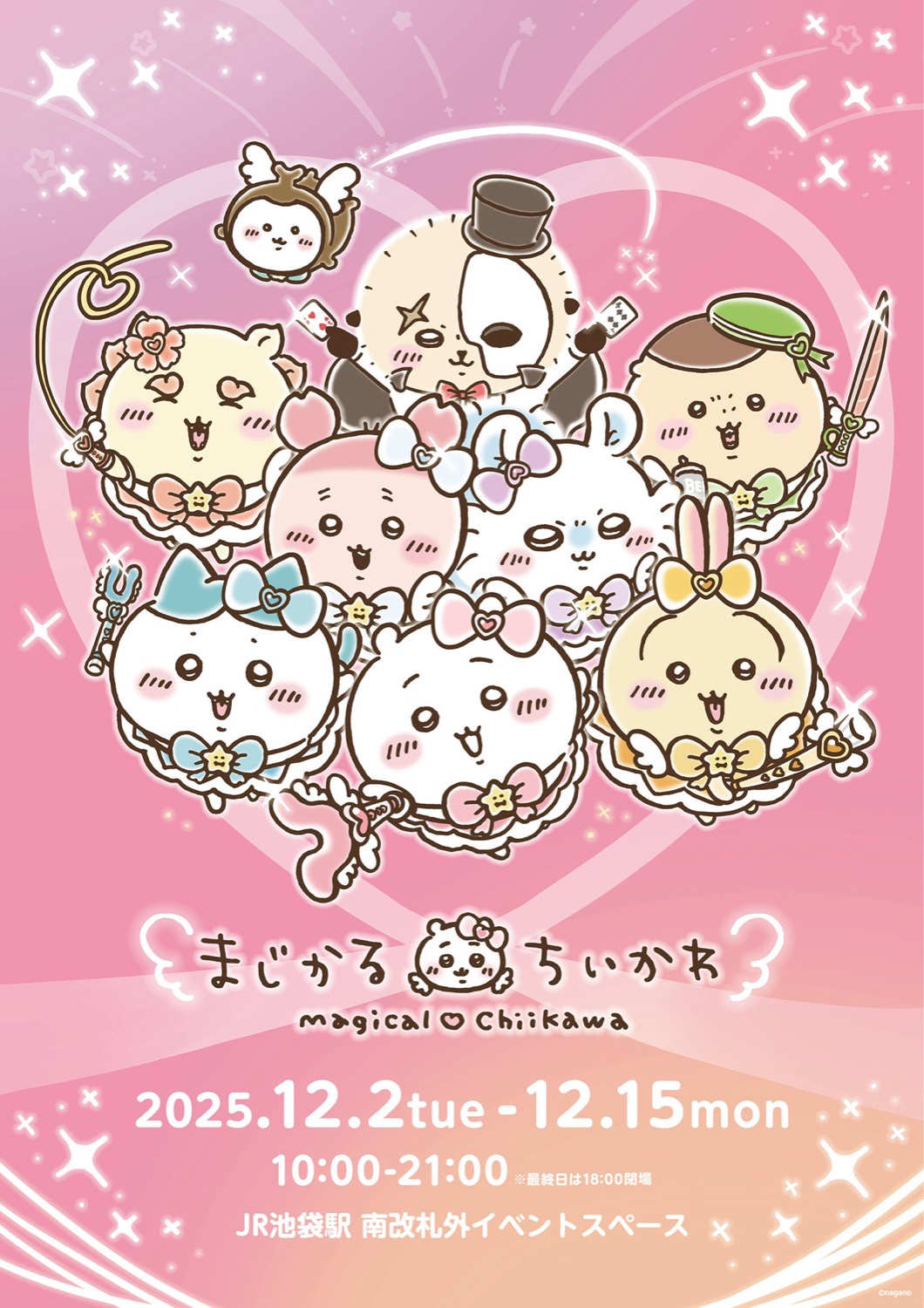 不器用ながらも何事も一生懸命頑張って仲間と強く生きている姿が尊い「ちいかわ (なんか小さくてかわいいやつ)」の人気グッズシリーズ『まじかるちいかわ』のポップアップストアが、JR池袋駅 南改札外イベントスペースにて、2025年12月2日〜12月15日までの期間限定で開催!