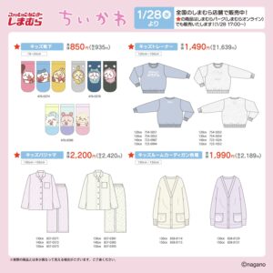 ちいかわ × しまむら 1月28日よりアパレル・日用雑貨が登場!