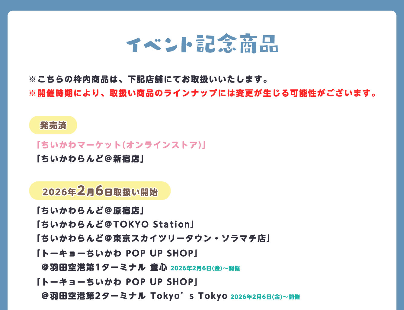・ちいかわらんど新宿店📝2月6日取扱い開始… pic.twitter.com/AKIe12Gval