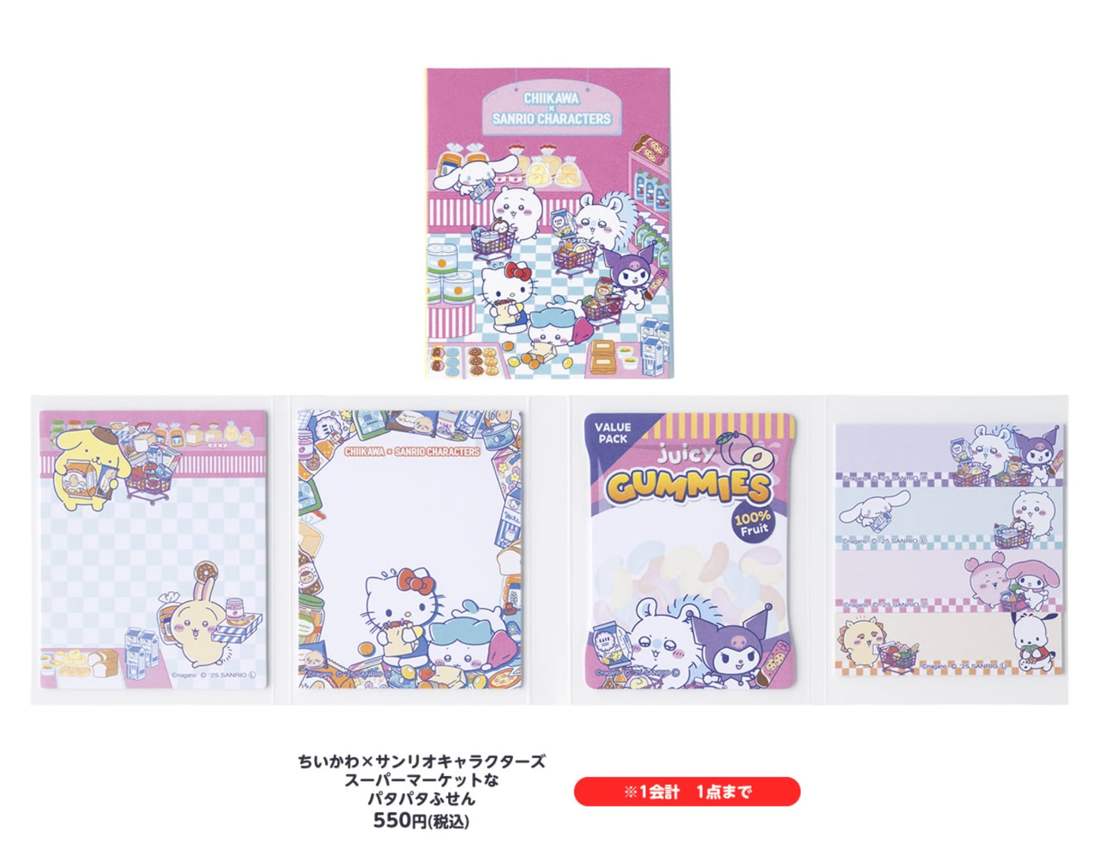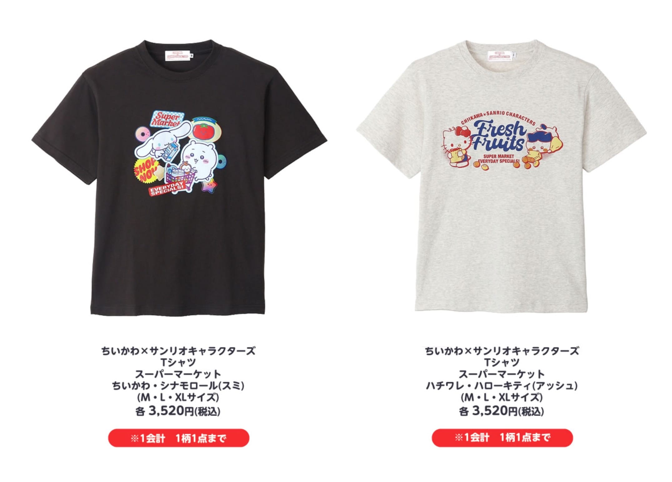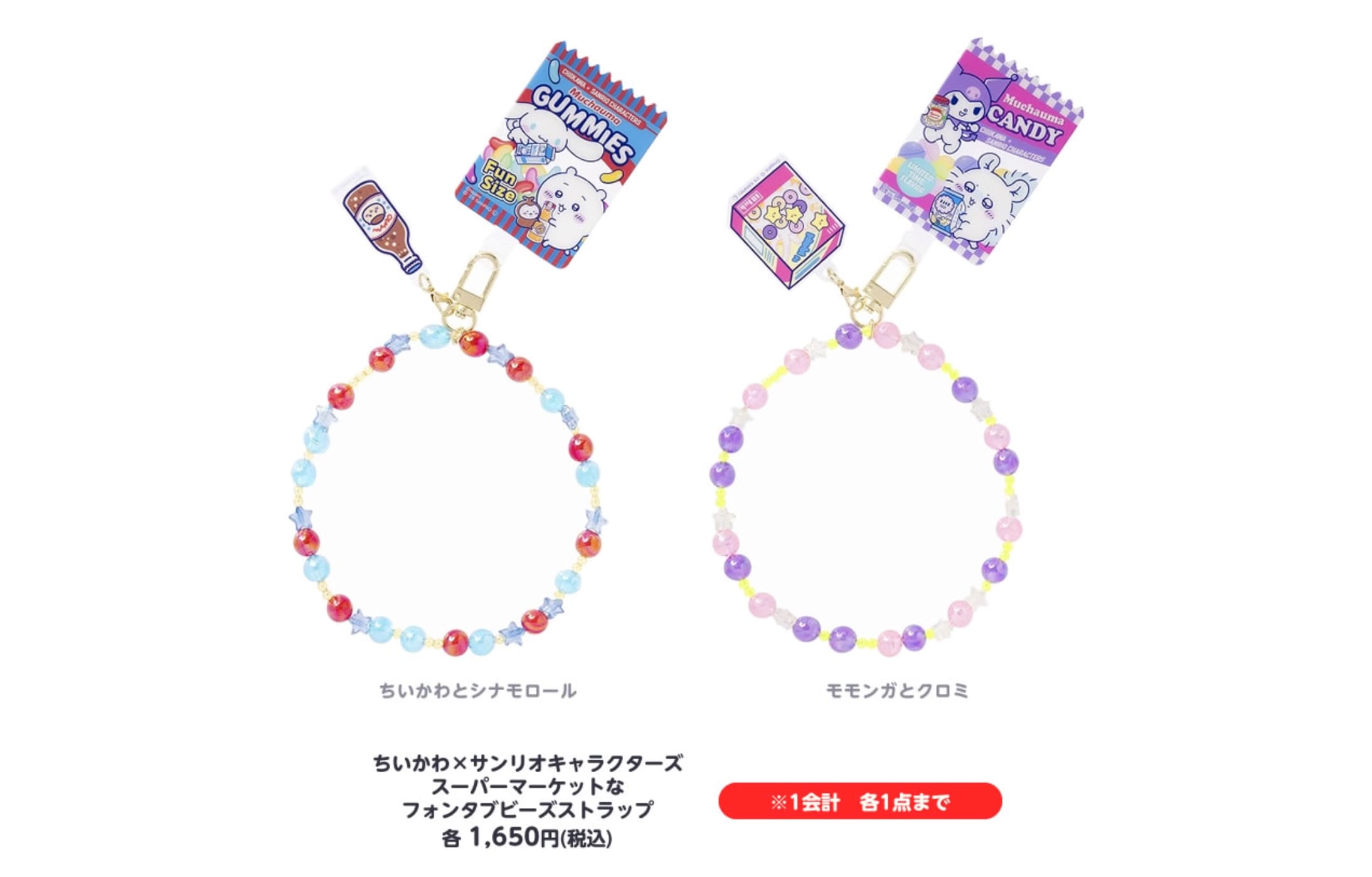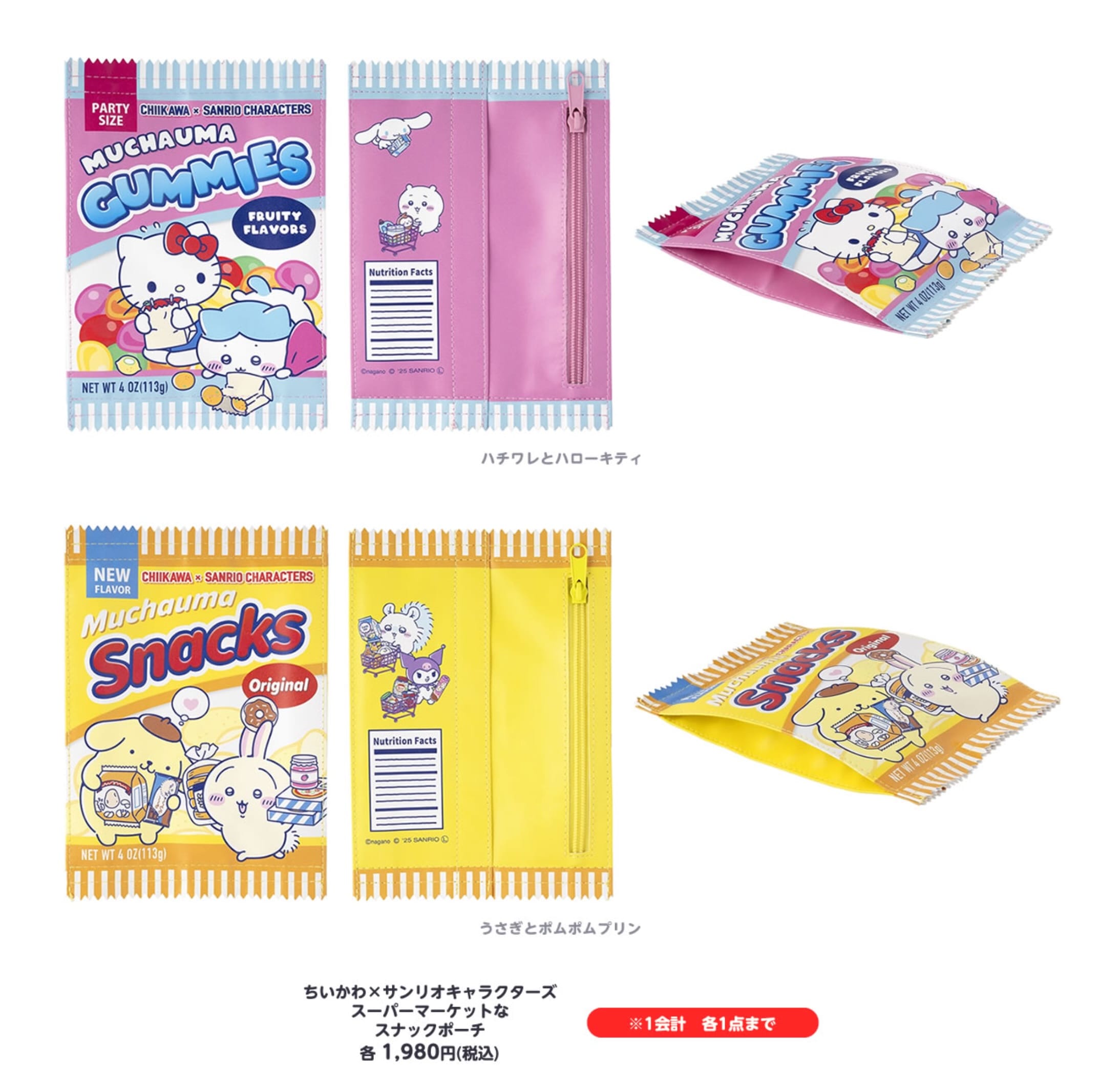 「ちいかわ × サンリオ」ポップアップストアでは、スーパーマーケットで買い物するちいかわたちとサンリオキャラクターズのコラボイラストを使用したオリジナルグッズが多数発売。