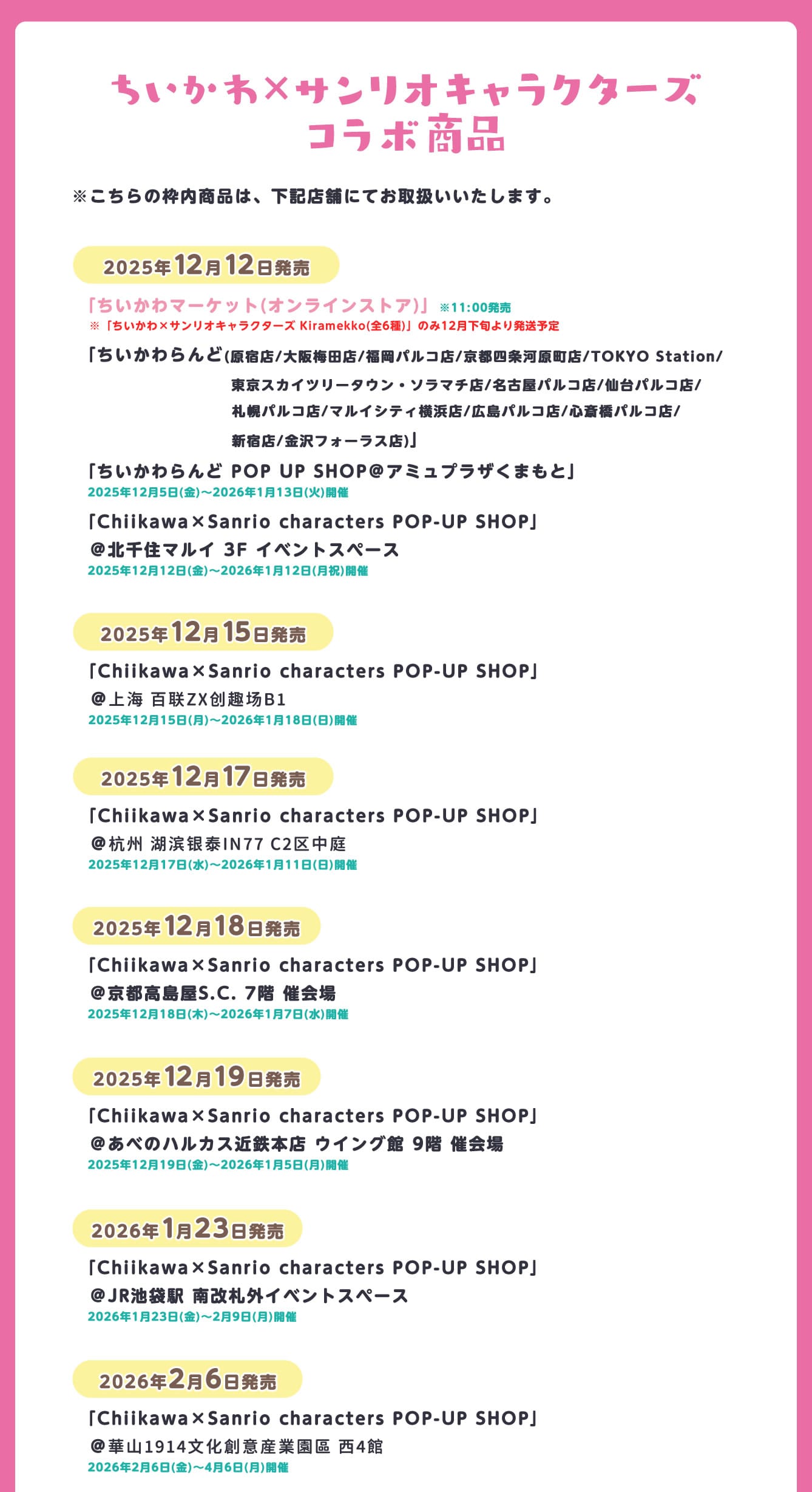 2026年1月23日よりJR池袋駅 南改札イベントスペースにて「ちいかわ × サンリオ」コラボのポップアップストアが開催!