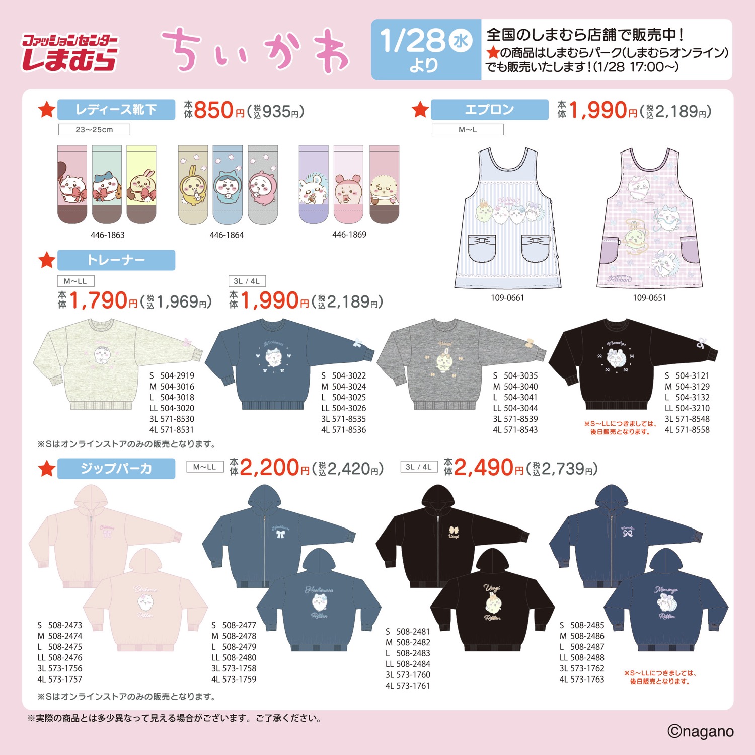 2026年1月28日より全国のファッションセンター「しまむら」と「しまむらオンライン」にて、「ちいかわ」のアパレルアイテムやコラボグッズを順次発売!