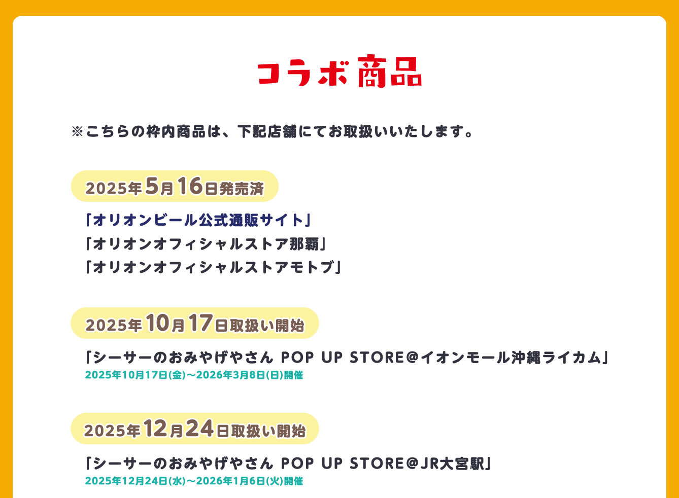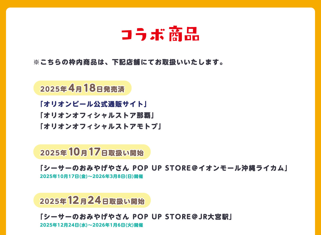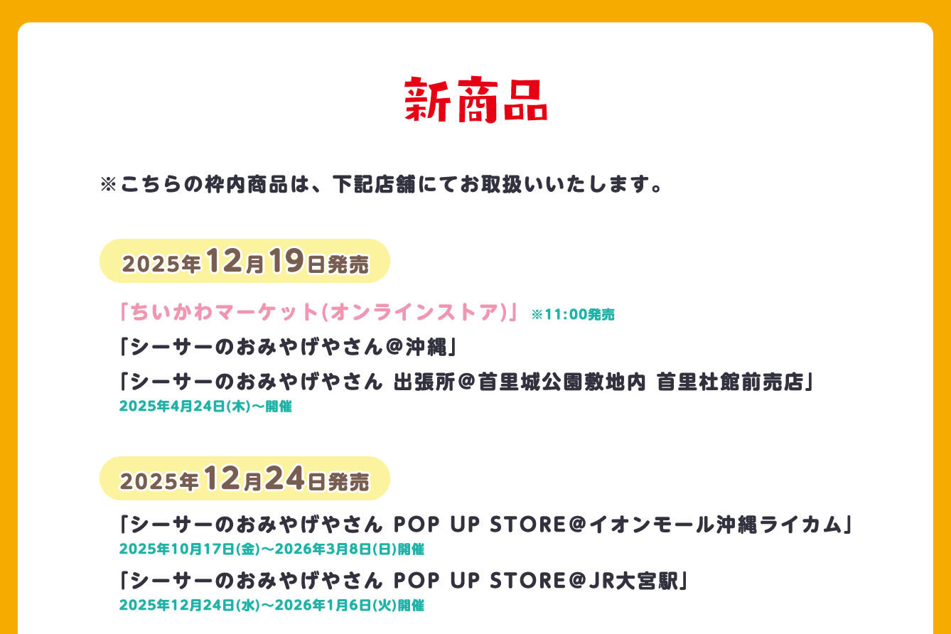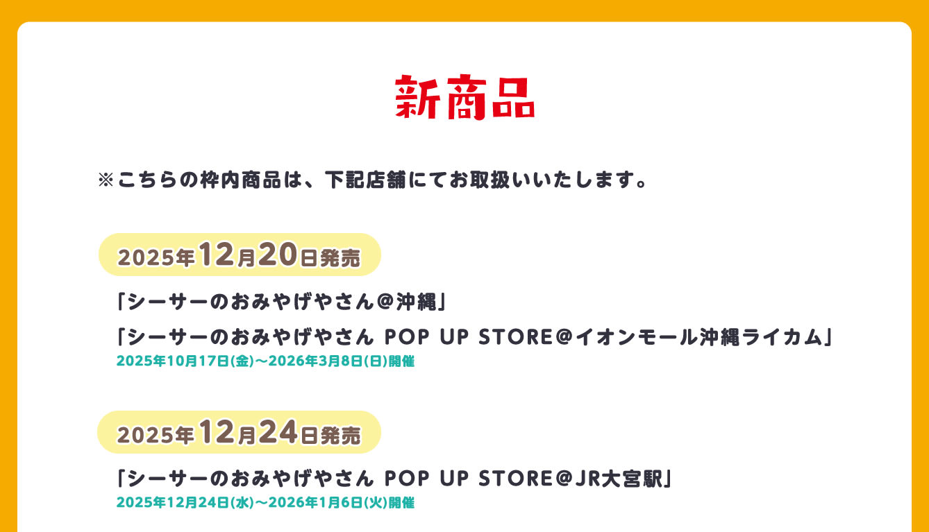 2025年12月24日より、JR大宮駅 改札外 西口イベントスペースにて、『シーサーのおみやげやさんPOP UP STORE』が開催される。