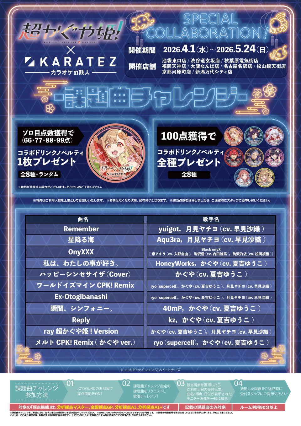 超かぐや姫! × カラオケの鉄人 4月1日よりコラボ開催!