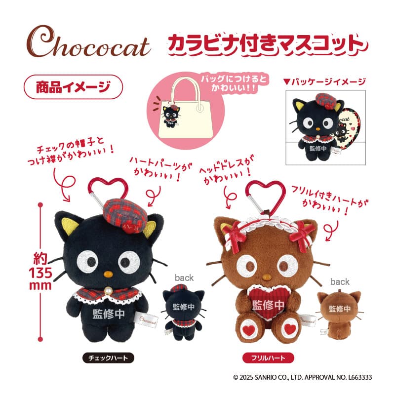 『チョコキャット』カラビナ付きマスコット [チェックハート / フリルハート] 各3,630円(税込)