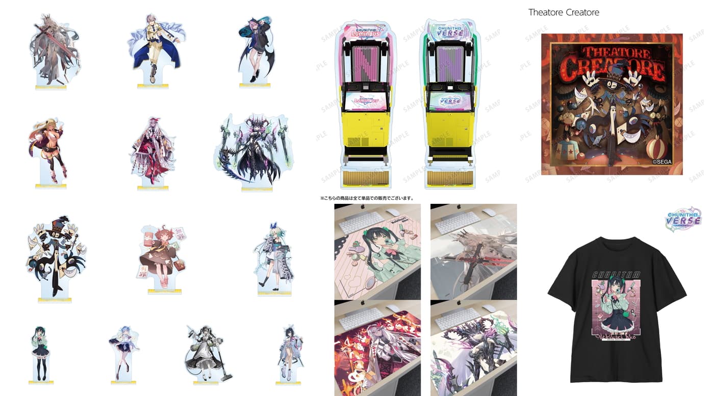 「CHUNITHM VERSE」の新作グッズは、キャラクターや筐体、楽曲ジャケットをデザインに取り入れたラインナップだ。