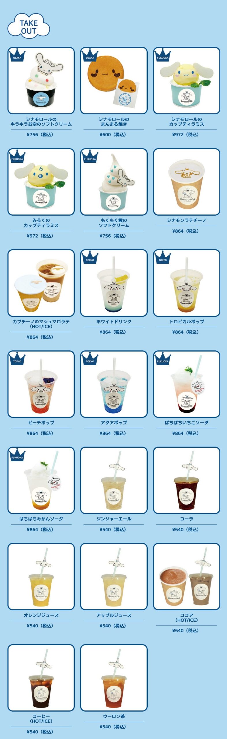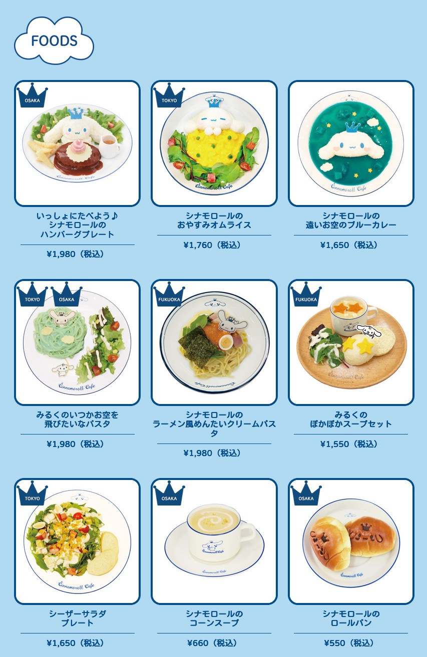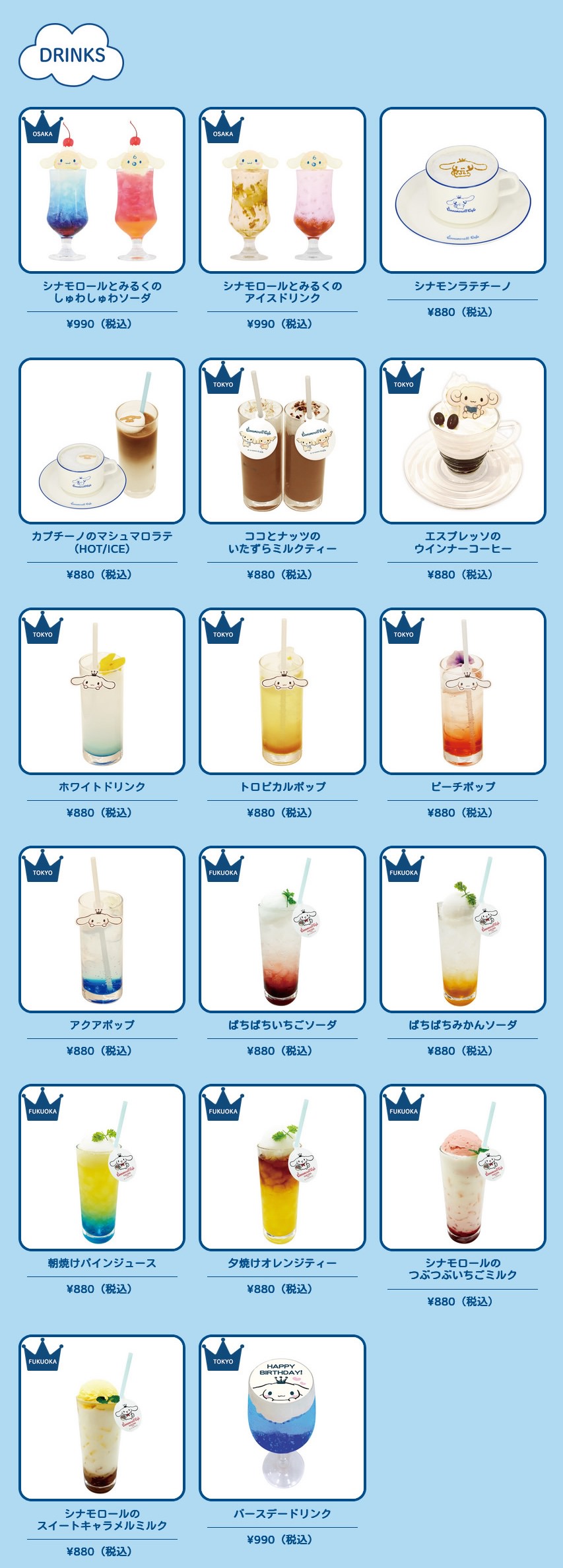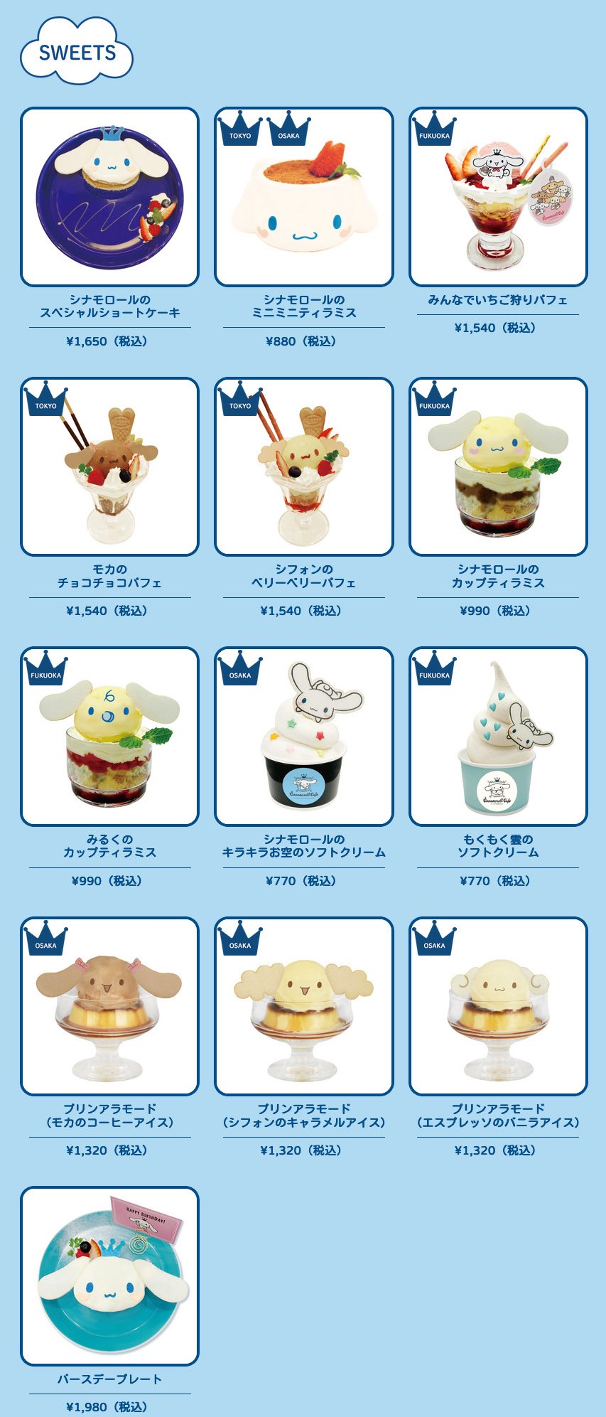 Cinnamoroll Cafe (シナモロールカフェ) in 新宿・難波・博多のメニュー