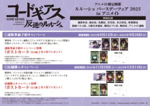 コードギアス バースデーフェア 2025 in アニメイト 11月29日より開催!