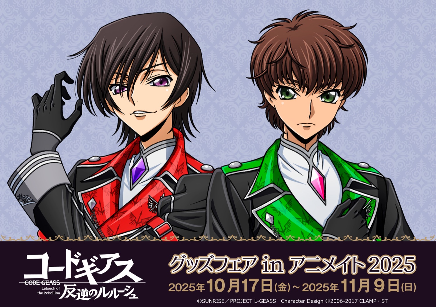 サンライズ制作の大人気SFロボットアニメ「コードギアス 反逆のルルーシュ」の『グッズフェア 2025』が、全国のアニメイトにて2025年10月14日〜11月9日までの期間限定で開催される。