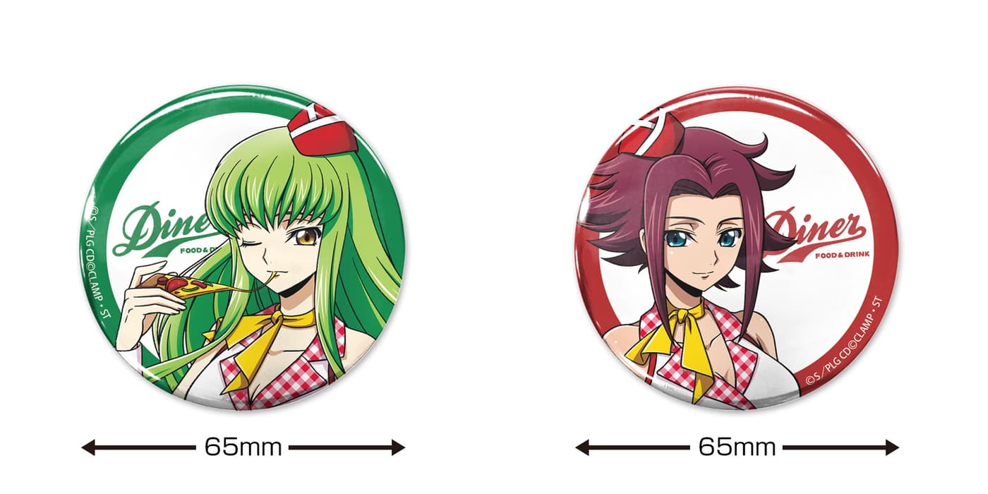 「コードギアス 反逆のルルーシュ」65mm缶バッジ アメリカンダイナーVer. [全2種] 各605円(税込)