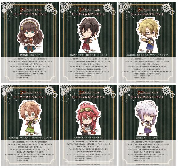「コドリアカフェ(Code:Realize CAFE)」では描き下ろしイラストを使用したビッグパネルを各店舗1体ずつ展示されされています!!そのビッグパネルをプレゼントするキャンペーンも実施中!!2,000円お買い上げ毎に『ビッグパネル抽選券』が一枚渡されます!!その抽選券を使い、応募された方の中から抽選で1名様にビッグパネルをプレゼント!!