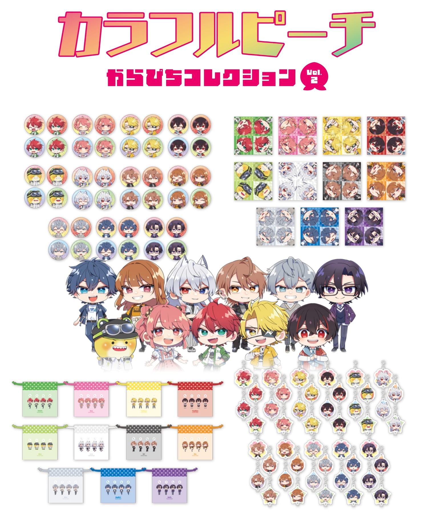 人気ゲーム実況者グループ「カラフルピーチ (カラピチ)」から、新作グッズ「からぴちコレクションVol.2」が、2026年2月中旬にP2C Studioより一般発売される。