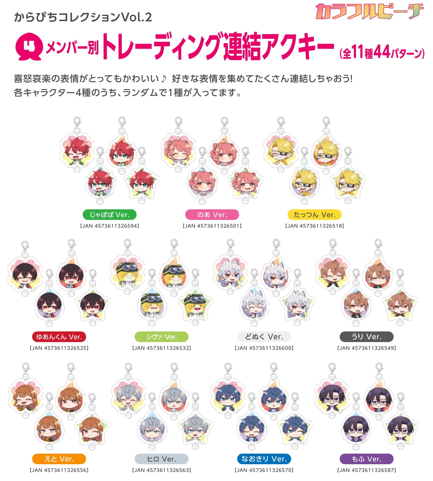 からぴちコレクションvol.2 メンバー別トレーディング連結アクキー [全11種] 各600円(税込)