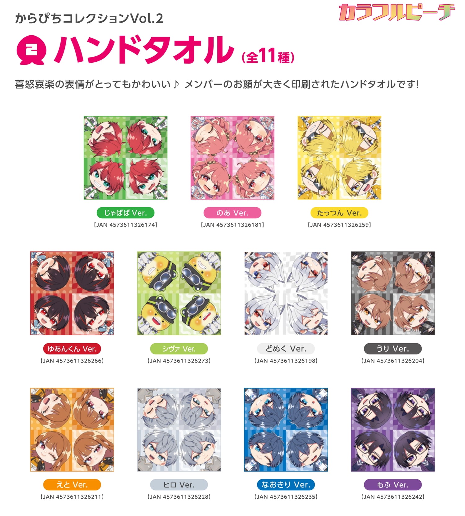 からぴちコレクションvol.2 ハンドタオル [全11種] 各900円(税込)
