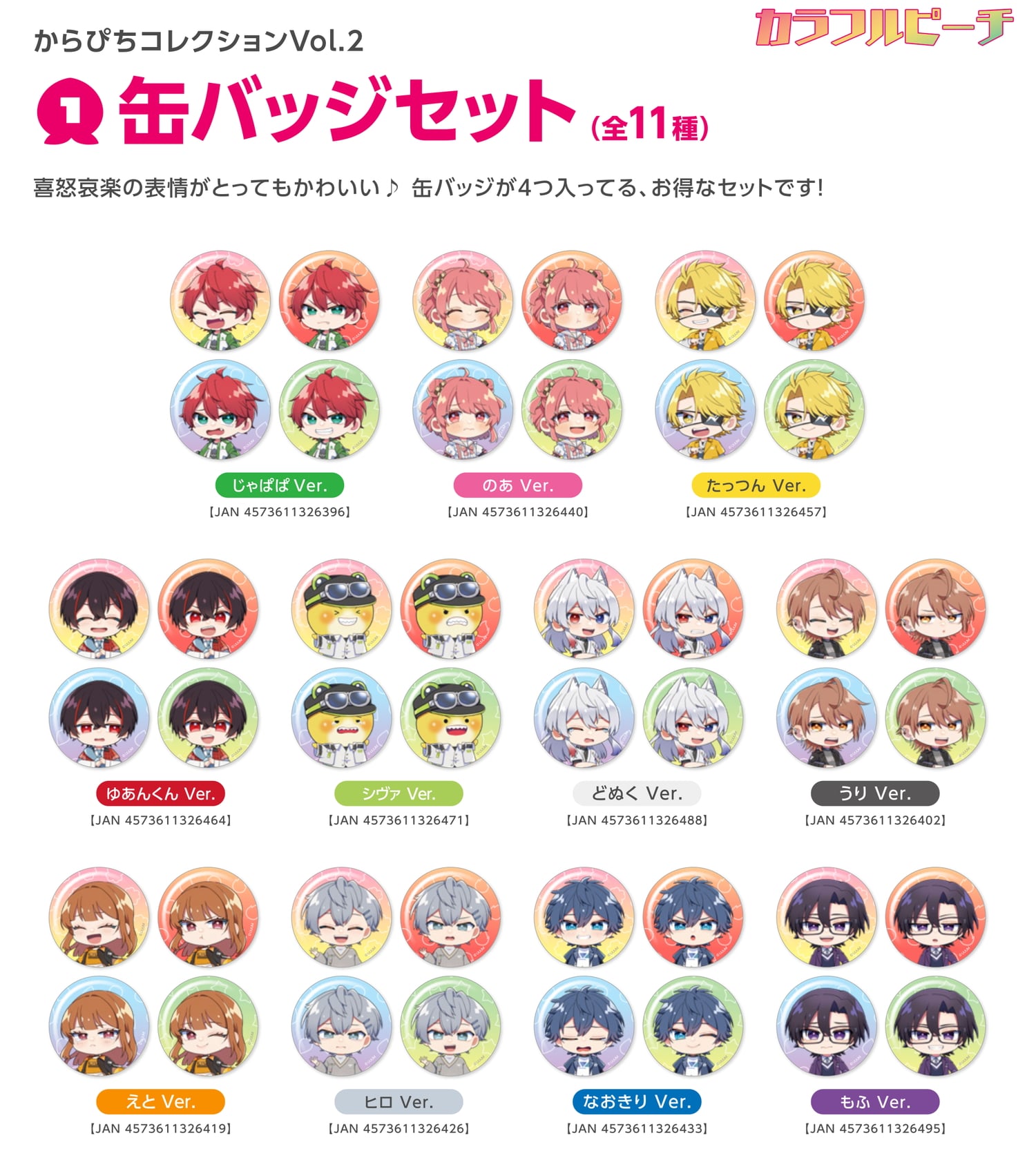 からぴちコレクションvol.2 缶バッジセット [全11種] 各1,600円(税込)