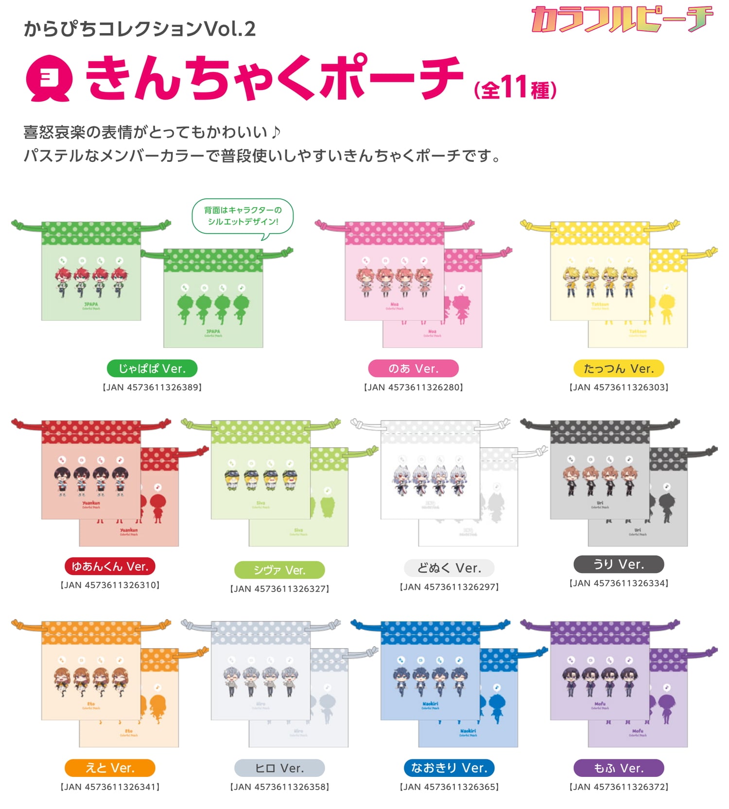 からぴちコレクションvol.2 きんちゃくポーチ [全11種] 各1,200円(税込)