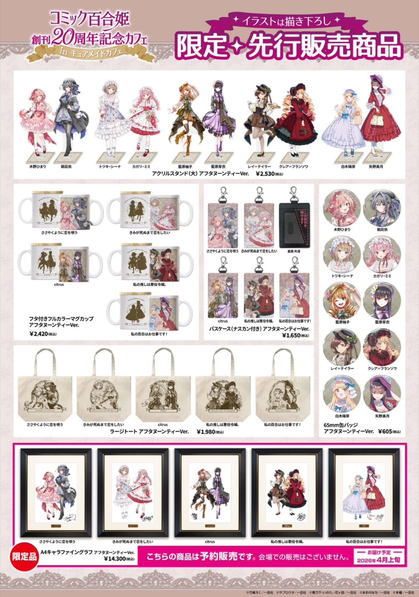 2025年12月19日〜2026年1月12日まで開催される「コミック百合姫」カフェでは、人気作品の新作グッズを多数先行販売!