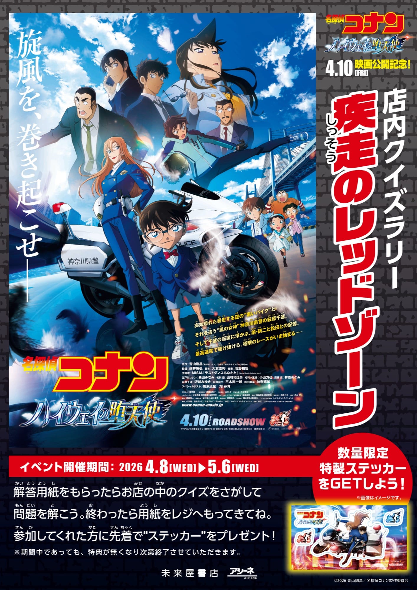 2026年4月8日より、全国の未来屋書店にて「名探偵コナン ハイウェイの堕天使」公開記念フェアを開催。