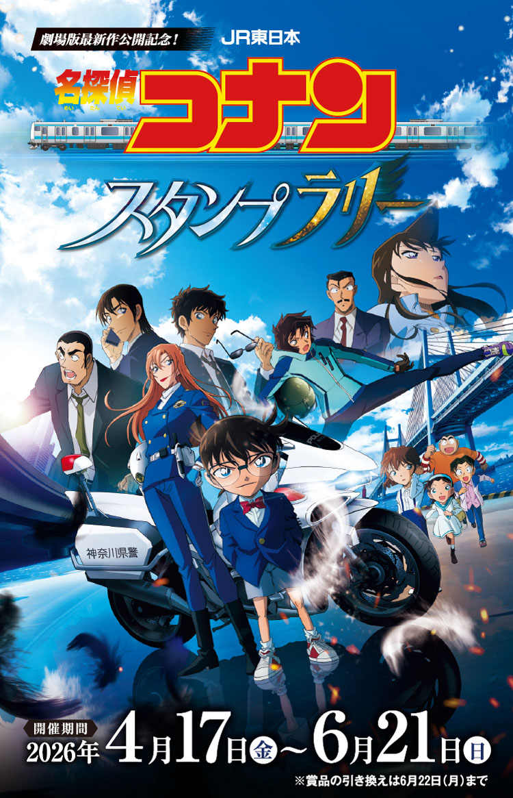 週刊少年サンデー(小学館)にて連載中「青山剛昌」先生による大人気漫画を原作としたアニメ「名探偵コナン」× JR東日本のコラボスタンプラリーが、2026年4月17日〜6月21日まで開催される。